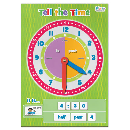 Tick tock, tick tock... children know what sound a clock makes but telling the time can be tricky to grasp. This magnetic Tell The Time pack is fun and engaging, encouraging children to learn whether at home or in the classroom. Learning how to tell the time is made easier when children can use the 46 magnetic activity pieces to place on the chart to help them associate times and activities on a typical day in digital or analogue. The clock teaches both 12 and 24 hour format and has rotating hands to be interactive. They can count minutes and learn the basics of o'clock, quarter past, quarter to and half past and there is an activity board on the reverse to help children practice telling the time over and over using the dry wipe pen that's included in the pack. This is a complete learning tool for time both visually and cognitively.