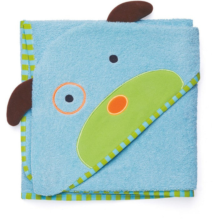 The Zoo Hooded Towel from Skip Hop wraps baby in cozy comfort and is made of soft cotton terry cloth, which is gentle on baby’s skin.