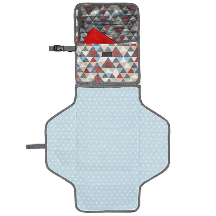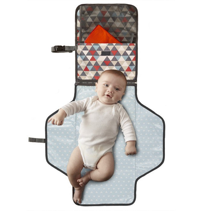 Its extra-wide changing pad wipes clean, and the head area is cushioned with an innovative "pronto pillow." The pad is also removable, allowing the body to become an independent diaper carry-all. The Pronto also includes a translucent wipes case, a mesh pocket that fits up to four large diapers and ointments, and a front zipper pocket for personal items.